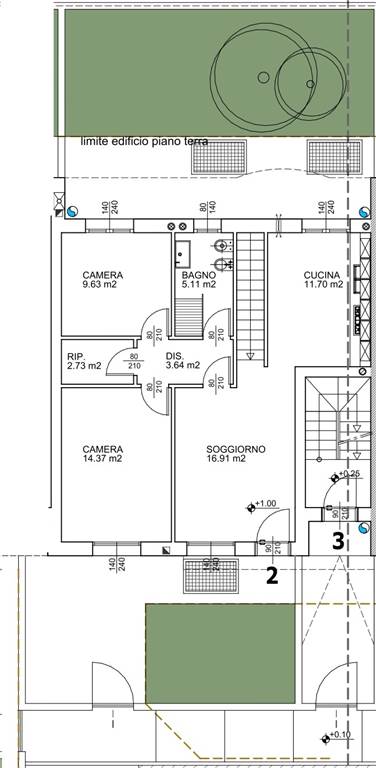 Ingresso pedonale indipendente dal giardino di proprietà, zona giorno da quasi 30mq calpestabili con soggiorno e cucina abitabile anche separabile, disimpegno, camera matrimoniale, seconda camera, bagno, ulteriore vano ad uso ripostiglio o secondo bagno/lavanderia.
