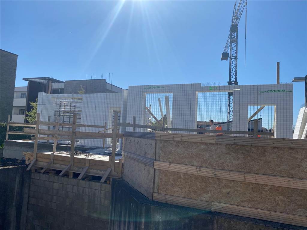 L'appartamento sarà edificato con elevati parametri costruttivi per raggiungere la certificazione A3 o superiore (valore di progetto) prevedendo innovativa costruzione con il sistema ECOSISM che prevede struttura in acciaio zincato a formare i casseri al cui interno vengono inseriti pannelli isolanti (come EPS, lana di roccia, etc.) che garantiscono un doppio cappotto (interno ed esterno alla parete portante) e successivamente vengono riempiti con calcestruzzo per creare una parete portante monolitica che garantisce ottime prestazioni sismiche, termiche ed acustiche superiori ai sistemi di costruzione tradizionali. I tavolati interni saranno in cartongesso doppia lastra 1,2cm+1,2cm con interposta lana di roccia per isolamento termoacustico. Serramenti basso emissivo in PVC con tapparelle in alluminio motorizzate, impianto di riscaldamento a pavimento con pompa di calore e predisposizione split idronici per il raffrescamento funzionante sempre con la medesima pompa di calore così anche da ridurre i costi di manutenzione, impianto di VMC (ventilazione meccanica controllata), impianto fotovoltaico minimo 3,5kw, predisposizione antifurto perimetrale sui serramenti e volumetrico interno, portone sezionale box coibentato e motorizzato, etc.