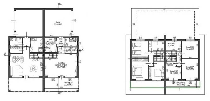 Il progetto è ancora personalizzabile sulla base delle esigenze abitative della clientela e prevede al piano terra grande zona giorno open space da circa 36mq calpestabili, grande lavanderia da 9mq, secondo bagno finestrato, ripostiglio, disimpegno che permette il comodo ingresso in casa anche direttamente dal box. Al piano superiore 2 camere matrimoniali, terza camera, terzo bagno, balcone a servizio di 2 camere da letto.