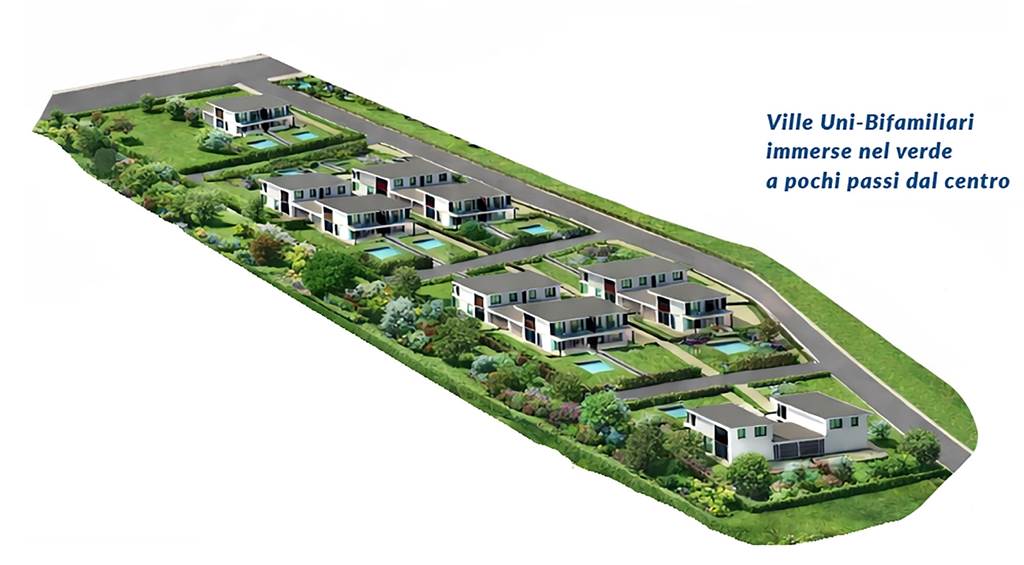 In nuovissimo contesto residenziale che si contraddistingue per gli ampi spazi aperti con INTROVABILI DISTANZE FRA LE VARIE UNITA' IMMOBILIARI DI CIRCA 30MT, si propone la realizzazione di ville singole e bifamiliari.