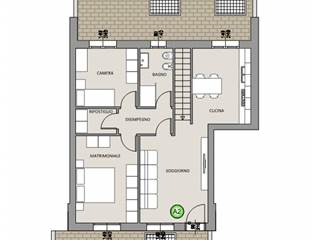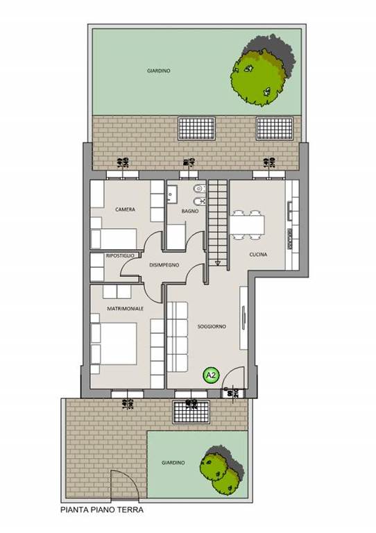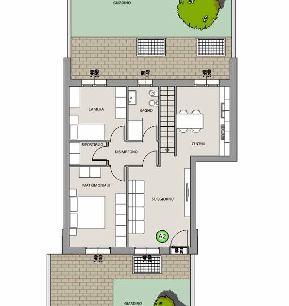 Ingresso pedonale indipendente dal giardino di proprietà, zona giorno da quasi 30mq calpestabili con soggiorno e cucina abitabile anche separabile, disimpegno, camera matrimoniale, seconda camera, bagno, ulteriore vano ad uso ripostiglio o secondo bagno/lavanderia.