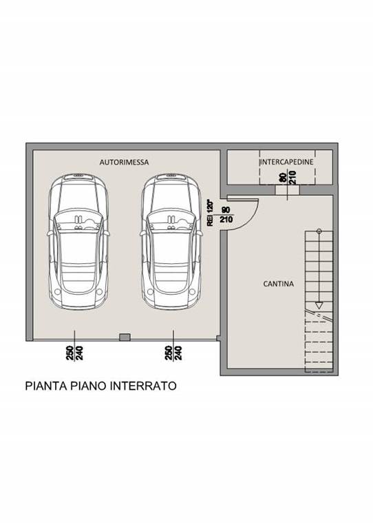 Scala interna all'appartamento porta all'interrato sopra descritto, all'esterno giardino da circa 50mq e 41mq di area piastrellata uso camminamenti/ porticato.