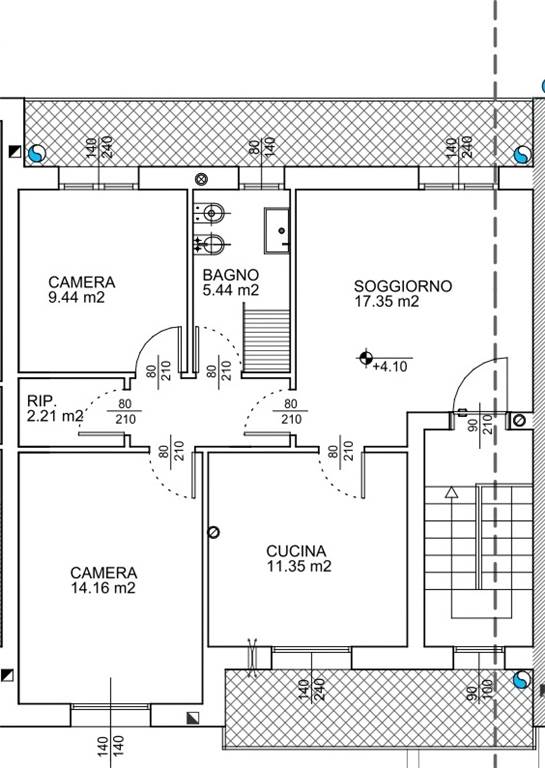 Scala interna all'appartamento che porta all'interrato sopra descritto, all'esterno circa 10mq di area pavimentata esclusiva di accesso all'appartamento.