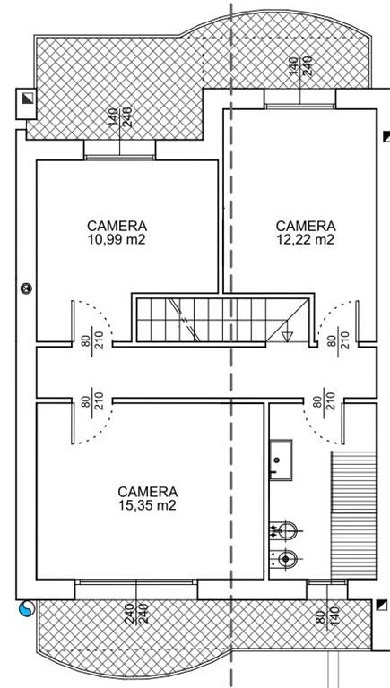 Piano primo: 3 ampie camere da letto, disimpegno e bagno.