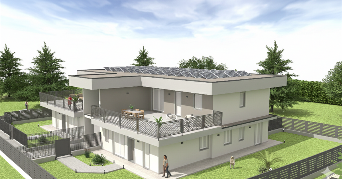 Finiture di pregio e criteri costruttivi per arrivare alla certificazione energetica in classe A grazie anche alle coibentazioni previste con cappotto 14cm, serramenti in massa bianca PVC a basso emissivo TRIPLO vetro con gas argon, impianto di riscaldamento a pavimento con pompa di calore per gestire anche il raffrescamento utilizzando lo stesso motore collegato a split idronici (predisposizione), impianto fotovoltaico con ben 6kw installati (no metano).