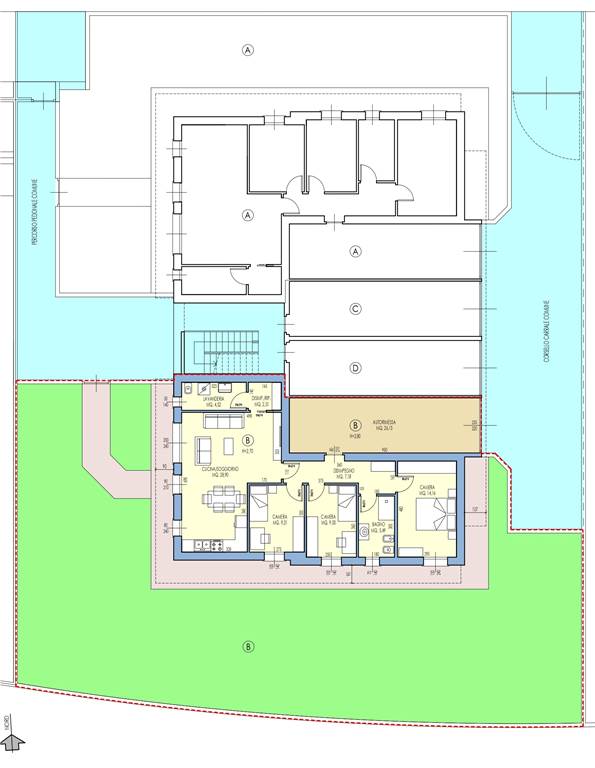 Disponibile anche appartamento B con stesse metrature ma con giardino pari a 306mq, prezzo 340.000€ (154mq comm. tot. parz.).