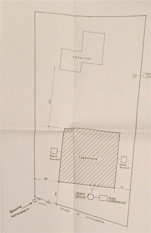 Trattasi di 375mq commerciali (349 capannone/calpestabili 308) di cui ufficio 20mq, 2 magazzini 96mq, laboratorio 173mq, loc caldaia 6mq, bagni 13mq. Area esterna circa 250mq + 1500mq di terreno agricolo antistante adibibile anche a parcheggio.
