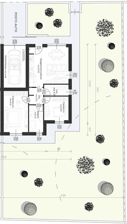 Privacy di alto livello garantita anche dalle distanze dai confini che variano dai 5 ai 13mt.