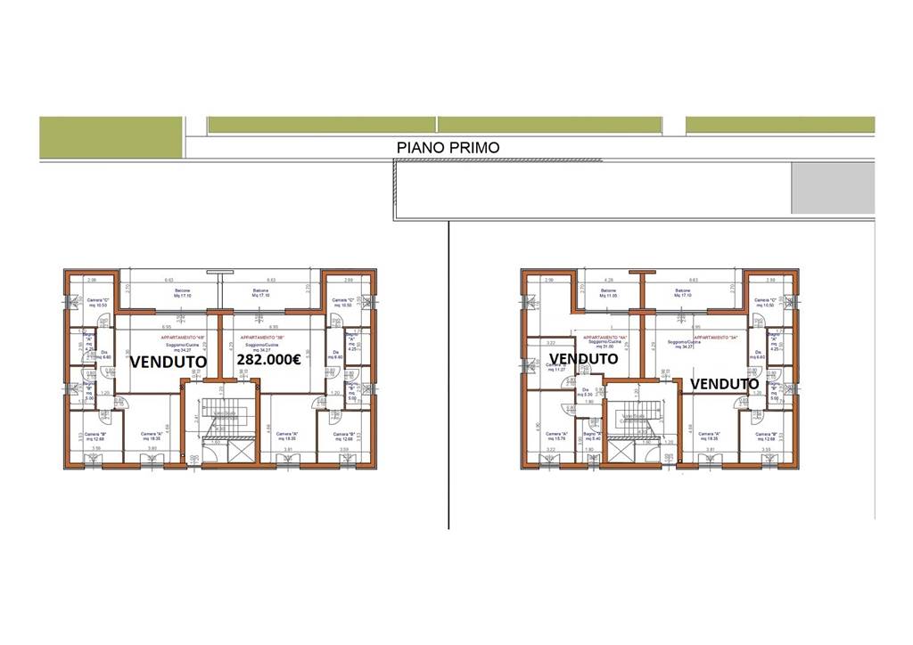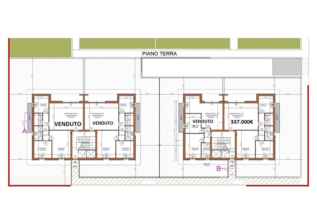 Trattasi di 2 palazzine gemelle di 3 piani fuori terra oltre box doppi in larghezza al piano interrato. 6 unità immobiliari per palazzina, 2 per piano con tipologia trilocale e quadrilocale per ciascun piano.