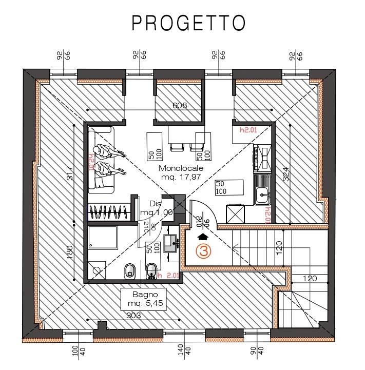 Piano secondo sottotetto al rustico venduto open space o con tavolati per ricavare vani agibili non abitabili (tipo locale hobby, palestra, etc.). Si precisa che, in alternativa, è possibile il recupero parziale del sottotetto per realizzare circa 30mq abitabili (ampia camera tipo suite con bagno pertinenziale).